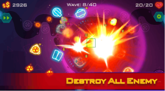 簡單易上手的操作方式,在沒有網(wǎng)絡(luò)的情況之下,都可以親自體驗,利用簡約的美術(shù)風格以及獨特的策略頭腦??勺屚婕彝瓿上鄳?yīng)的塔防任務(wù),這款游戲主要以幾何圖形為主要題材,通過正確部署各種防御塔的方式,就能抵御各種敵人的入侵。在海量關(guān)卡中都會呈現(xiàn)出6種不同的防御塔,從普通再到高難度應(yīng)有盡有。