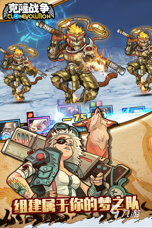 這是一款以末日廢土為背景的卡牌類游戲,它不僅擁有最與眾不同的搞怪畫風,而且還擁有酷炫的技能設計,能夠讓你看到一個別具特色的克隆世界,在這里你可以發(fā)掘出各個時代的英雄人物,并且?guī)ьI(lǐng)著他們奪得最終的勝利。