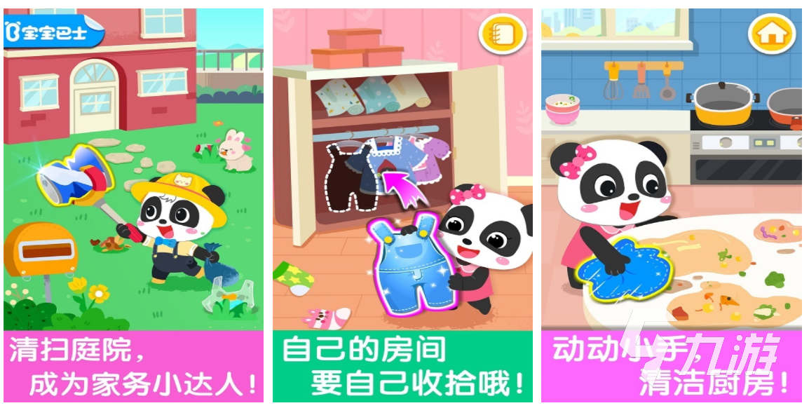 這是一款非常鍛煉小朋友們收納整理能力的益智類小游戲,在這款游戲中為小伙伴們提供了各種需要收納的場(chǎng)景,比如說房間、庭院或者廚房等。小伙伴們需要做的事情也比較簡(jiǎn)單,如果是在房間中,則需要將各種雜亂的衣服整理好并收納歸位,而如果是在廚房中,就需要將餐桌上的污漬擦干凈,并將廚具都擺放到合適的地方。