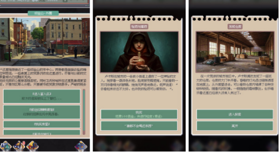 除了以廢土沙盒為主題之外,又加入豐富的文字劇情元素,通過(guò)點(diǎn)擊選項(xiàng)來(lái)推動(dòng)劇情故事發(fā)展,每次選擇都意味著之后的結(jié)局有所差異。其中包含多種特色場(chǎng)景,有真實(shí)的城市環(huán)境,可探索不同區(qū)域,比如拍賣會(huì)競(jìng)技場(chǎng),也能在野外搜刮并尋找到各種稀有資源,通過(guò)技能成長(zhǎng)的方式,全面提升個(gè)人能力,你還要學(xué)會(huì)建造幸存者基地。