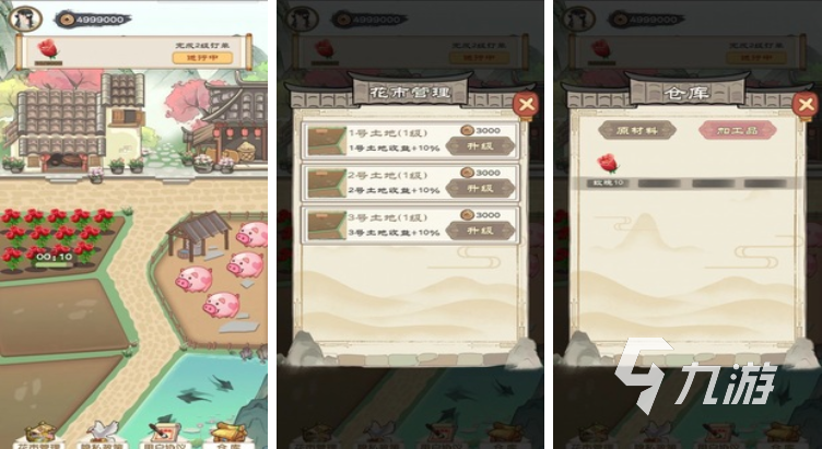 《江南花市》的主要玩法就是在江南小鎮(zhèn)中種植各類花卉,然后將這些花卉進(jìn)行售賣,賺取金幣。隨著等級的提升,你可以種植的花卉種類會(huì)越來越多,到時(shí)候就可以開一間屬于自己的花店。當(dāng)然除了種植花卉以外,游戲內(nèi)還有養(yǎng)殖畜牧和農(nóng)田種植等,家園中的魚塘還可以投放魚苗,吸引喜歡釣魚的npc前來消費(fèi)。每次完成系統(tǒng)訂單或參與活動(dòng)后還可以獲得相應(yīng)的獎(jiǎng)勵(lì)。