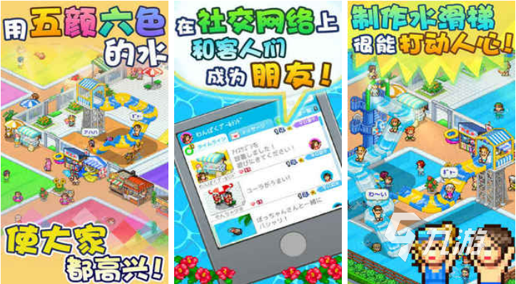 經(jīng)營水上樂園的游戲大家是不是都沒玩過?玩家在這款游戲里經(jīng)營的就是水上樂園,玩家可以在水上樂園里修建很多的游泳池,在游泳池里排放不同顏色的水,這樣的泳池顯得更加好看,游客們也喜歡在五顏六色的池子中游泳,每一位游客在進門之前都會花錢買門票,玩家擁有足夠多的門票錢之后,就可以購買更多娛樂設(shè)施,或者將水上樂園的面積擴大。