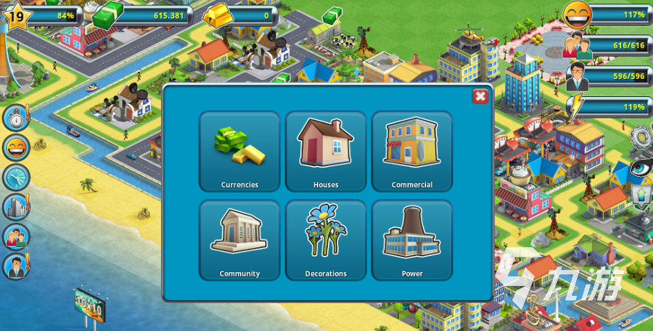在這款游戲中玩家的身份更加不一般,需要扮演一個厲害的市長,游戲開局只給你一大筆資金,以及一個荒蕪的小島,玩家需要將海島上的樹木都砍伐殆盡,然后在平坦的島嶼上建設(shè)一個個建筑物,最后將島嶼建造成一個巨大的都市,你也可以邀請很多人來你的城市里居住,還要給所有居民安排一些工作,讓他們?yōu)槌鞘械腉DP做貢獻。
