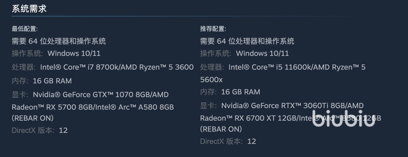 該游戲作為育碧的最新大作,對PC硬件配置提出了較高的要求。以下是游戲的推薦配置信息,處理器選Intel Core i5 11600K或AMD Ryzen 5 5600X;顯卡推薦RTX 3060 Ti、RX 6700 XT或Arc B580;內(nèi)存需16GB RAM;支持Windows 10/11系統(tǒng);需DirectX 12以確保最佳性能和畫面效果,幫助玩家在1080P分辨率下以60幀每秒的流暢度體驗游戲。