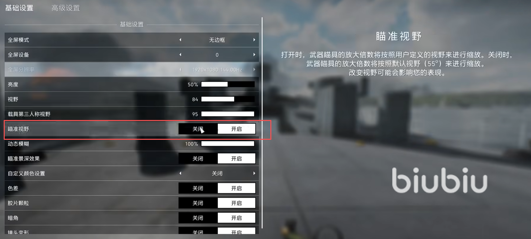 它的作用,是打開(kāi)時(shí)會(huì)讓武器瞄具放大倍數(shù)按照用戶定義的視野來(lái)進(jìn)行縮放,如果關(guān)閉,瞄具的放大倍數(shù)就是默認(rèn)視野(55°)來(lái)進(jìn)行縮放。在使用后坐力大的槍械之后,調(diào)整瞄準(zhǔn)視野為開(kāi)啟狀態(tài),會(huì)更容易壓槍,提高命中率。