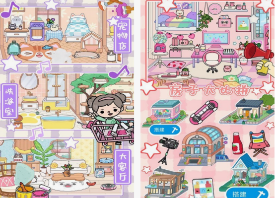 除了里面擁有著庫(kù)洛米,同時(shí)還有女孩子們比較喜歡的其他角色,也是模擬生活題材的。玩法比較簡(jiǎn)單,在進(jìn)入了精美的卡通世界以后,既能創(chuàng)建自己喜歡的世界,甚至是故事,玩起來(lái)也是非常有意思的。其中在裝扮了房屋以后,可利用進(jìn)行的比拼以后,證明自己的審美,同時(shí)還有超多不同的房屋類型,包括寵物店甚至是客廳,都可自由搭建。