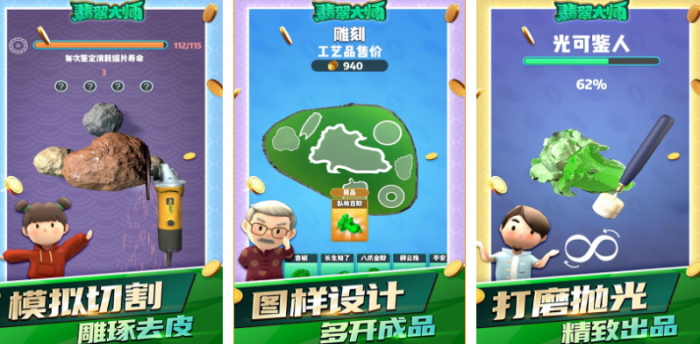 在這款游戲中玩家將會成為一名翡翠行業(yè)的大師,并且玩家除了要加工各種翡翠外,還需要在玉石市場尋找合適的原石,而尋找原石的過程對于玩家來說可謂是非常重要的一環(huán),因為如果玩家能用低價購買到十分有潛力的原石則很有可能會一波賺的盆滿缽滿,同時該游戲會為玩家們標(biāo)上每一個原石的潛力,因此用什么價格將其買下來則是玩家需要考慮的事情哦!