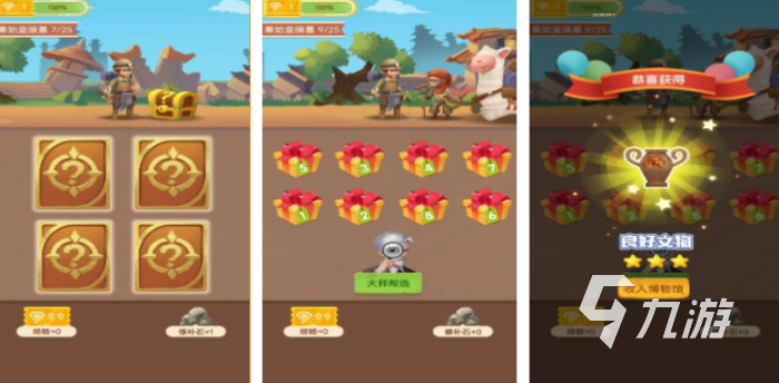在游戲中玩家將會進(jìn)入一個個充滿寶物的洞穴,而該游戲的規(guī)則是玩家只能在每一個洞穴的八個禮盒中中拿走一個禮盒,因此如何鑒別每一個禮盒的價值則十分的重要。并且在游戲的每一場對局中玩家都有一個鑒寶數(shù)量目標(biāo),如果玩家能夠在規(guī)定的時間內(nèi)完成這一目標(biāo)的話則可視為游戲通關(guān),反之則會導(dǎo)致游戲失敗,但失敗后游戲還會為玩家提供一些鑒寶技巧哦!