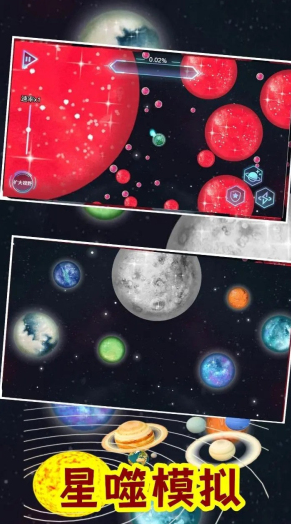 踏入這個獨(dú)特的游戲世界,玩家將化身為一顆身負(fù)奇異使命的流浪星球。這顆星球可不一般,它具備令人咋舌的神奇能力,在漫漫宇宙之旅中,能將途經(jīng)的行星逐個吞噬,隨著吞噬數(shù)量的增多,自身的體積也會不斷膨脹,愈發(fā)龐大。游戲的視覺呈現(xiàn)堪稱一絕,畫面精美絕倫。每當(dāng)它張開巨口將行星納入腹中時,那震撼的特效便會瞬間綻放。