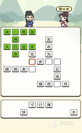 畫面干凈的闖關(guān)游戲,它設(shè)計(jì)了許多不同的挑戰(zhàn)關(guān)卡,包含大量成語(yǔ)。玩家需要通過(guò)接龍的規(guī)則完成挑戰(zhàn),具體操作是在給出的方塊中填入正確的漢字,玩游戲的過(guò)程中,能逐步掌握更多漢字相關(guān)的知識(shí)。游戲收錄的漢字十分全面,且每個(gè)關(guān)卡的題目都不重復(fù),新手可以先從簡(jiǎn)單難度開(kāi)始,熟悉后再嘗試更難的關(guān)卡,長(zhǎng)期玩這款游戲,還有助于擴(kuò)充個(gè)人的詞語(yǔ)量。