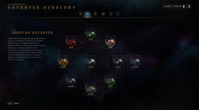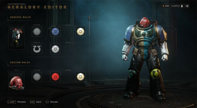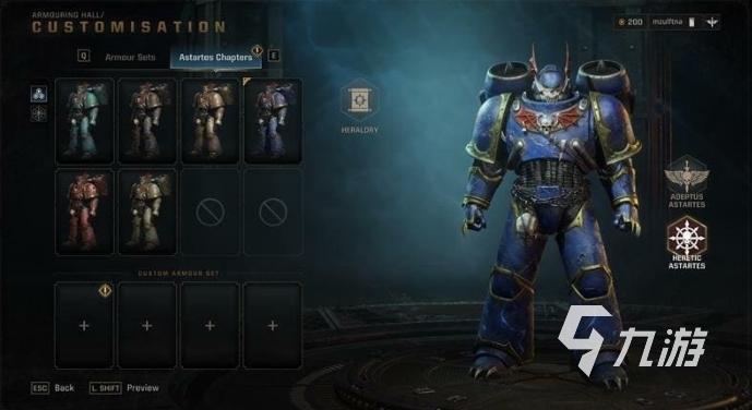 在游戲中的自定義選項,直接就是包含了“阿斯塔特戰(zhàn)團”選項卡,大家可去訪問代表不同的星際戰(zhàn)士戰(zhàn)團,以及不同的預(yù)設(shè),玩家隨后更是能主動去定制屬于自己的盔甲涂裝、徽章和顏色等圖案,整體的自由度還是比較高的。