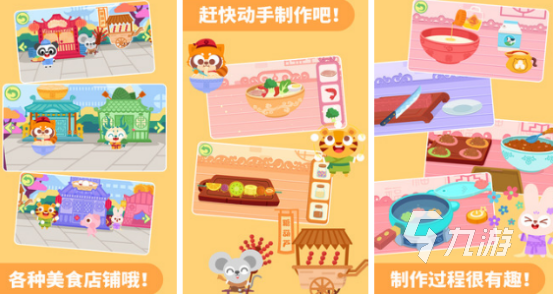 美味的食物是很多寶寶無法抗拒的,這是由兒歌多多所打造的游戲精品,受到很多小朋友的喜歡及認可,多多美食街正式營業(yè)玩家,玩家可以隨便嘗各種美食,比如月餅、糖葫蘆、餃子、棒棒糖等等,另外還能夠化身成為小廚師體驗美食的制作流程。這樣的游戲培養(yǎng)寶寶的動手能力,也能夠讓寶寶擁有身臨其境的感受,弘揚中華傳統(tǒng)美食。