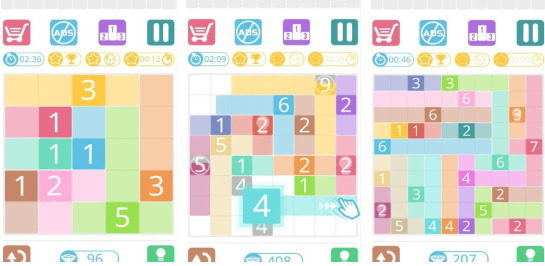 將數(shù)字合成有效結(jié)合拼圖,不光是把數(shù)字要擺在合適的位置,還需要通過合成數(shù)字,然后去解鎖新的方塊。玩法是比較新穎的,不會(huì)像傳統(tǒng)拼圖那樣,很容易就會(huì)玩膩。在合成數(shù)字時(shí)就會(huì)讓人覺得很爽快,在拼圖的時(shí)候同樣也會(huì)磨性子,把兩種體驗(yàn)放在一起還是很容易上癮的。玩這款游戲其實(shí)很有目標(biāo)感,更能吸引人。