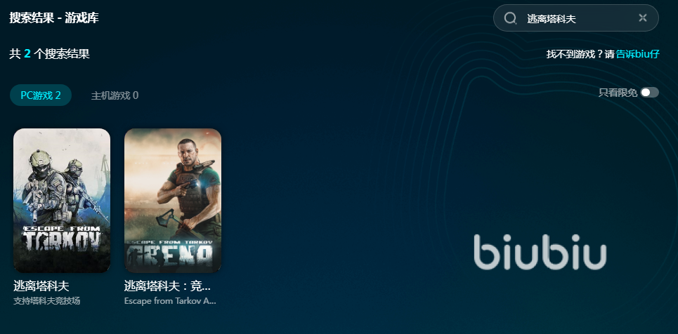 為什么推薦biubiu呢?那是因?yàn)樗Ч娴暮芎茫忻嫔洗蟛糠钟螒蚨寄苡?,加速范圍惠及全球游戲。而且平臺(tái)里的資源也很多,搜索逃離塔科夫就能找到游戲,區(qū)服還很全面,不管是玩亞服還是北美服都可以,超全資源等待用戶點(diǎn)擊。