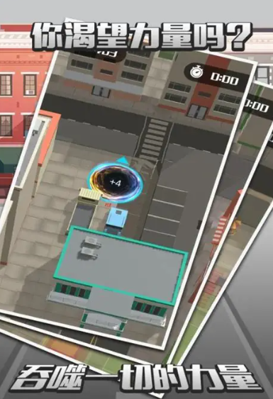 這款游戲最大的特點是模仿了城市模擬的感覺,你會變成一個不斷往外擴張的宇宙黑洞,從一開始吞噬小物件后面開始不斷升級,最終把整個城市的標志性建筑都吞噬掉,這里面主要采用的是漸進式的成長機制,大家可以通過不斷吸收路面上的汽車以及樹木等來讓自己更加強大。 在這個過程中,你可以感受到吞噬效果,以及整個城市路面崩塌的效果。還是很震撼的。