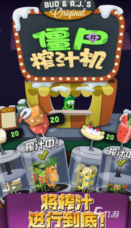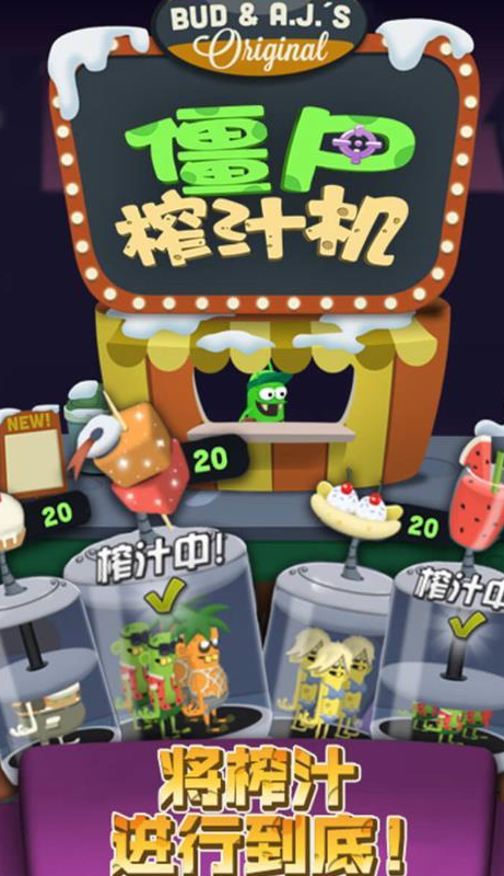 這款游戲畫面偏卡通風(fēng)格,玩家要在霧蒙蒙的沼澤里找喪尸,過程中要小心別被它們發(fā)現(xiàn),等喪尸出現(xiàn)后再把它們抓住,整個(gè)過程的動(dòng)畫效果很突出。玩的時(shí)候有幾件事需要大家去留意,怎么抓到僵尸,抓到后要拿到自己的特殊工廠里,用僵尸榨汁機(jī)榨成汁再賣掉。賣了能可以得到很多的金幣,這些金幣可以用來升級(jí)自己的汽車店,記得用道具,盡量精準(zhǔn)地捕捉僵尸,這樣才能不斷攢更多積分。