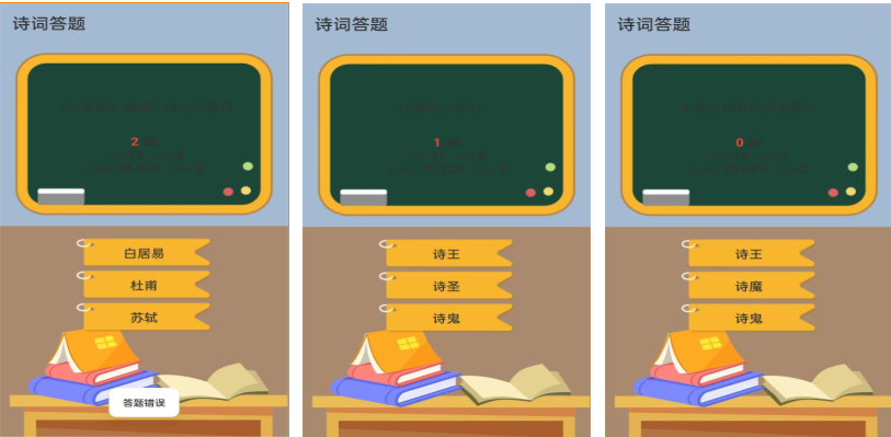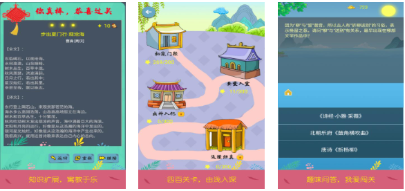 這是款特殊的猜謎互動(dòng)類型游戲,主題玩法就是根據(jù)題目的提示做一些選擇題,比如會(huì)提問(wèn)玩家詩(shī)詞的原作者是誰(shuí),或者作者具備著什么樣稱號(hào)之類的,選擇題簡(jiǎn)單好上手簡(jiǎn)單點(diǎn)擊即可完成,三選一的選擇機(jī)制獲勝幾率會(huì)大大提升,簡(jiǎn)單操作和詩(shī)詞歌賦元素的融合會(huì)讓低齡的孩子越玩越上頭。