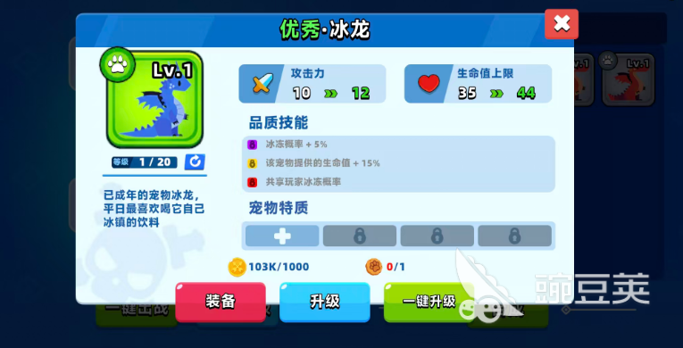 首先是比較推薦新手用的火龍,商店里面開寶箱是比較容易開出來這個寵物的,技能是利用噴火的效果來給敵人造成輸出,后期技能效果可以讓玩家暴擊率+8%,然后給自己提供攻擊力+10%的加成,最后就是在噴火的時候會有持續(xù)時間翻倍的增益,比較適合搭配火系玩。