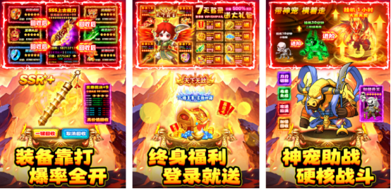 經(jīng)典三職業(yè)再次來襲,戰(zhàn)法道各有各的優(yōu)勢,在瑪法大陸中和你一起共同闖蕩,這些職業(yè)雖然有超強的戰(zhàn)斗力,但是都利用q版的畫風展現(xiàn)。在較大的場景里有大量怪物,等你來消滅。每次將怪物打敗后,即可收集大量的裝備,或者各種法寶,采取自動回收以及自動拾取的玩法,降低了大家的操作門檻。