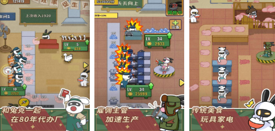 一款以創(chuàng)業(yè)作為核心的游戲,這些小兔子就會有擬人化的設(shè)計,可以通過和這些兔子們在一起,然后去創(chuàng)辦獨特的經(jīng)營模式。游戲中有傳統(tǒng)的美食,還有家電以及玩具,所有的一切和生活都息息相關(guān)。為了讓工廠的效率更高,那還需要不斷的去拓展生產(chǎn)線,一旦在擁有新的工廠之后,那就可以擁有更好的收入。通過模擬的玩法,玩家還可以雇傭主管,讓自己可以輕松的完成創(chuàng)業(yè)。