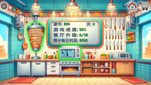 沙威瑪傳奇圍繞中東美食沙威瑪展開,從處理食材到把做好的沙威瑪包起來,整個過程都能體驗到,玩家要操作燒烤切片、卷餅包裝這些步驟,升級設備后能解鎖自動削皮、自動包裝的工具,顧客可以自己選配料,每個人喜歡的口味和能等的時間都不一樣,游戲里偶爾會遇到乞丐要飯、食材不夠的情況,還有一些隱藏的劇情彩蛋可以體驗。
