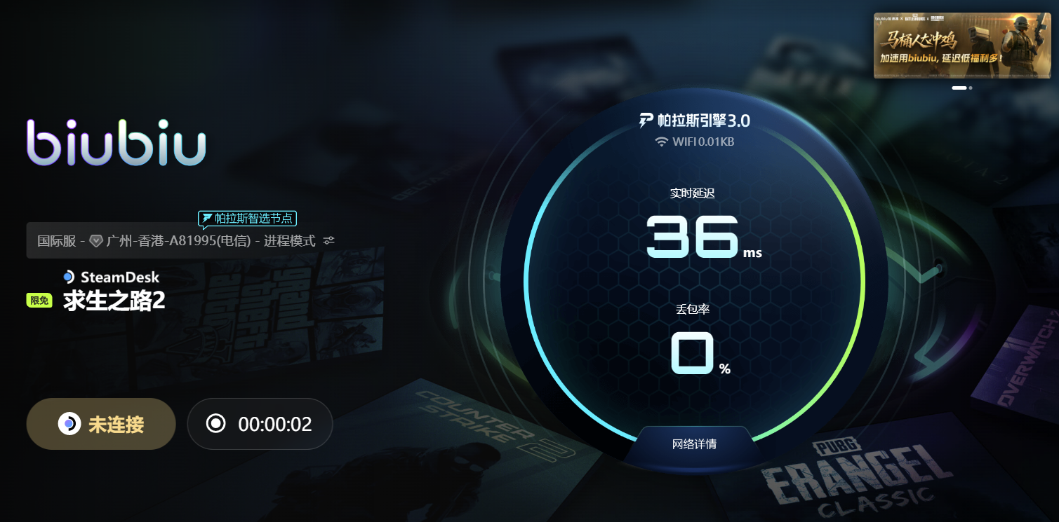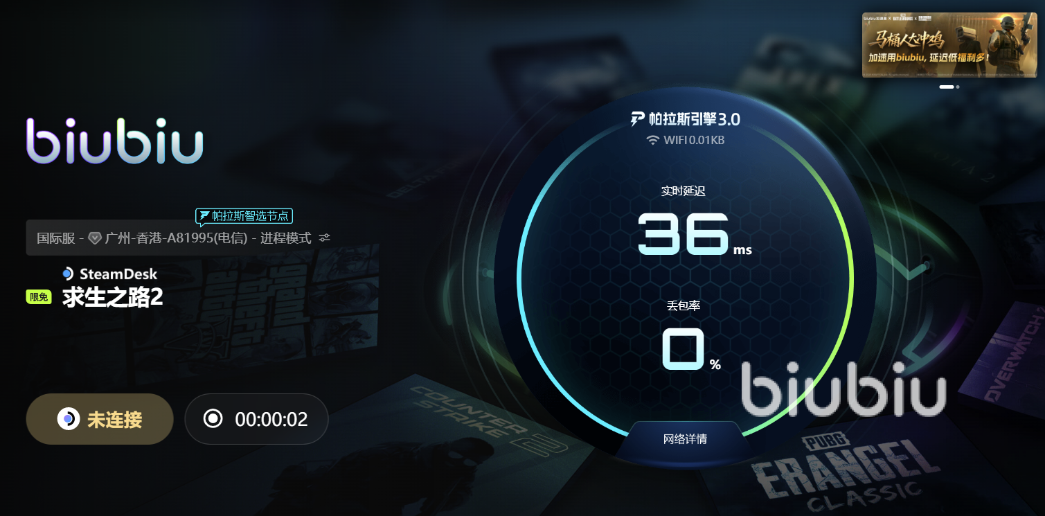在聯(lián)機(jī)運(yùn)行的過(guò)程里邊,高延遲、頻繁掉線、加載卡頓是破壞體驗(yàn)的三大“殺手”,特別是對(duì)于求生之路這類,極度依賴實(shí)時(shí)協(xié)作的生存合作游戲,哪怕一秒的延遲都可能讓全隊(duì)陷入絕境。而跟人讓人苦惱的是,后續(xù)如果要想從從Steam創(chuàng)意工坊下載了新地圖或MOD時(shí),等待的時(shí)間不緊過(guò)長(zhǎng),很多時(shí)候還需要重新開(kāi)始,而這些問(wèn)題,其實(shí)都源于網(wǎng)絡(luò)連接不穩(wěn)定或節(jié)點(diǎn)距離過(guò)遠(yuǎn)。想要徹底的解決這一切,不妨來(lái)嘗試下文中的這款biubiu加速工具。