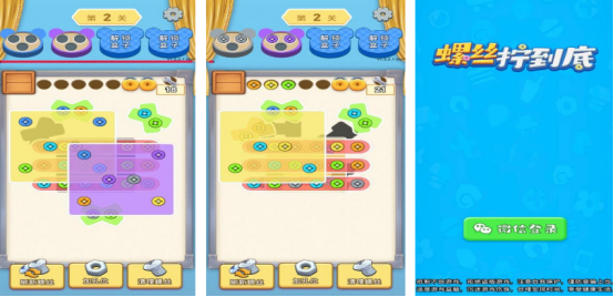 海量關卡中,開局后將會看到層層疊加的各種螺絲母,這些螺絲的顏色都完全不同,有黃色也有紫色。大家只需按照正確的順序,將這些螺絲全部放在一個相同顏色的盒子中,以次的消除,每次消除后都可將分數(shù)累積到自己的排行榜中,只有將屏幕中所有的螺絲全部拆除之后即可完成闖關。下方還會有多個輔助道具,比如清理螺絲或者刷新等。