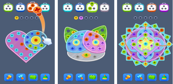 色彩繽紛的游戲畫面,有不同的螺絲錯綜復雜的交縱著,而大家卻需將對應的顏色螺絲全部消除,即可快速闖關。其實在消除的過程中也秉持著三消的元素,因為只有三個相同顏色的螺絲放在一個盒子中,才可快速消除,此游戲并沒有任何的廣告限制,老少都適合。