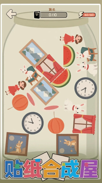 這里的畫面很很簡單干凈,操作也特別容易上手,在玩的時候大家可能會碰到各種各樣的貼紙,它把房屋設計和合成的玩法結合起來了,很有意思。剛開始玩的時候,要把一樣的貼紙湊一起合成,合成之后就是一張?zhí)貏e絢麗的貼紙。合成之后不要閑著,把這些貼紙貼到書本上,想怎么貼就怎么貼,弄出很多不一樣的造型和外觀。這游戲的玩法一點也不復雜,輕松就可以體驗到設計的樂趣,大家可以來這款游戲去體驗一下,打造自己的貼紙書本世界。