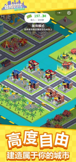 游戲通過“合成加建設”的方式來打造一個理想中的小鎮(zhèn),玩家得招募市民,還要巧妙布置裝飾品,把小鎮(zhèn)裝點得漂漂亮亮的。游戲畫面清新,玩法也挺新奇,每種建筑都有10個級別等玩家解鎖。除了建城市,還有市長挑戰(zhàn)和收集圖鑒以及完成任務賺獎勵的玩法等玩家探索。畫面簡潔又好看,地圖大得很,合成玩法簡單又好玩,把同等級的建筑合在一起,就能升級了。