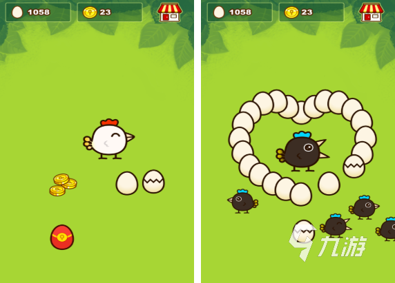 游戲的畫面主要是以小清新作為核心,玩家可以自由的發(fā)揮個人想象力,然后給這些小雞搭配不同的色彩,體現(xiàn)出個性化。玩家只需要通過點擊屏幕就可以讓這些小雞完成孵蛋,而在整個下蛋的過程中,顏色也會出現(xiàn)變化。只需要點擊紅色的就可以輕松的獲取隨機金幣,整個玩法是超級簡單有趣的。