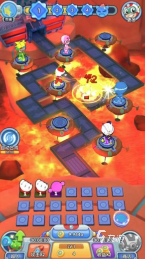 本作是款休閑性不錯的開心超人主題塔防闖關(guān)游戲,將動作冒險與塔防玩法結(jié)合的內(nèi)容在漫改游戲中還是很罕見的,玩家可以在三維的地圖上放置形形色色的防御道具保護好自己的家園,形態(tài)各異的防御塔和輔助AOE技能增加了整體耐玩性,卡通生動的美術(shù)配以超級炫目的物理特效都讓這款神作名聲大噪。