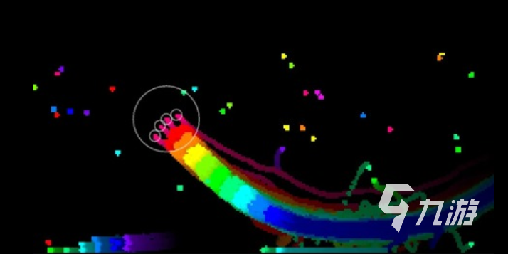 說起來大家可能不信,這款色彩鮮艷的游戲創(chuàng)作靈感是來自于貪吃蛇,游戲剛開始你會(huì)操控一個(gè)發(fā)光的小綠球,在屏幕中不斷與各種顏色的小球互相融合,最終化成一條擁有彩虹顏色的線條?;谪澇陨咄娣ǖ脑O(shè)定讓玩家上手就會(huì),你吃掉的小光球越多得分就會(huì)更多,而且線條的顏色也會(huì)變得更加鮮艷。