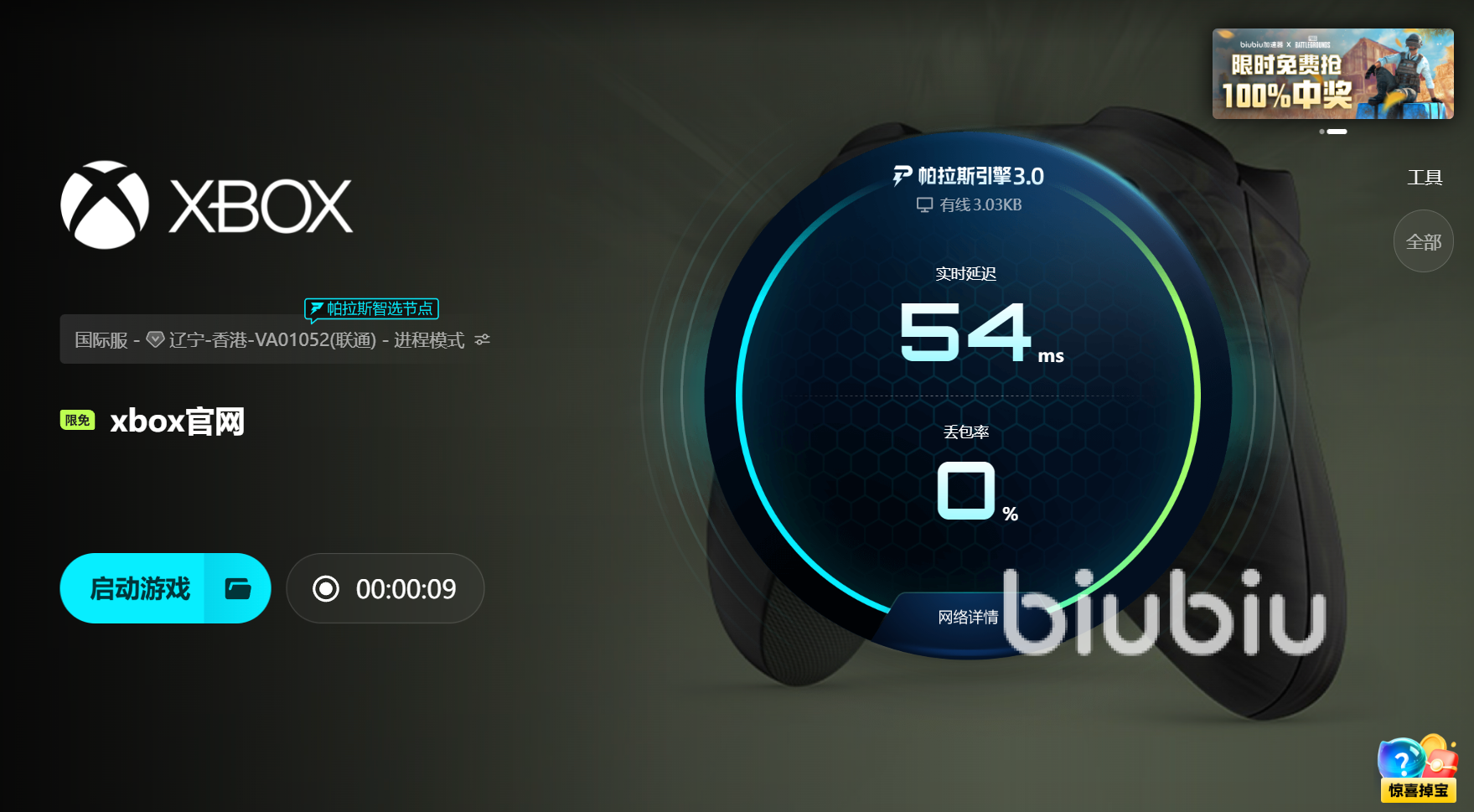 使用方法也很直觀。打開(kāi)biubiu客戶(hù)端,選擇xbox平臺(tái)加速后點(diǎn)擊開(kāi)啟,根據(jù)提示進(jìn)行網(wǎng)絡(luò)連接,整個(gè)過(guò)程簡(jiǎn)單提示清晰小白玩家也很容易理解上手操作。而且biubiu加速器后臺(tái)占用極低,不影響幀率或系統(tǒng)性能。加速完成后回到游戲,連接更穩(wěn)定,加載更快,主機(jī)與服務(wù)器之間的數(shù)據(jù)交換順暢無(wú)阻。