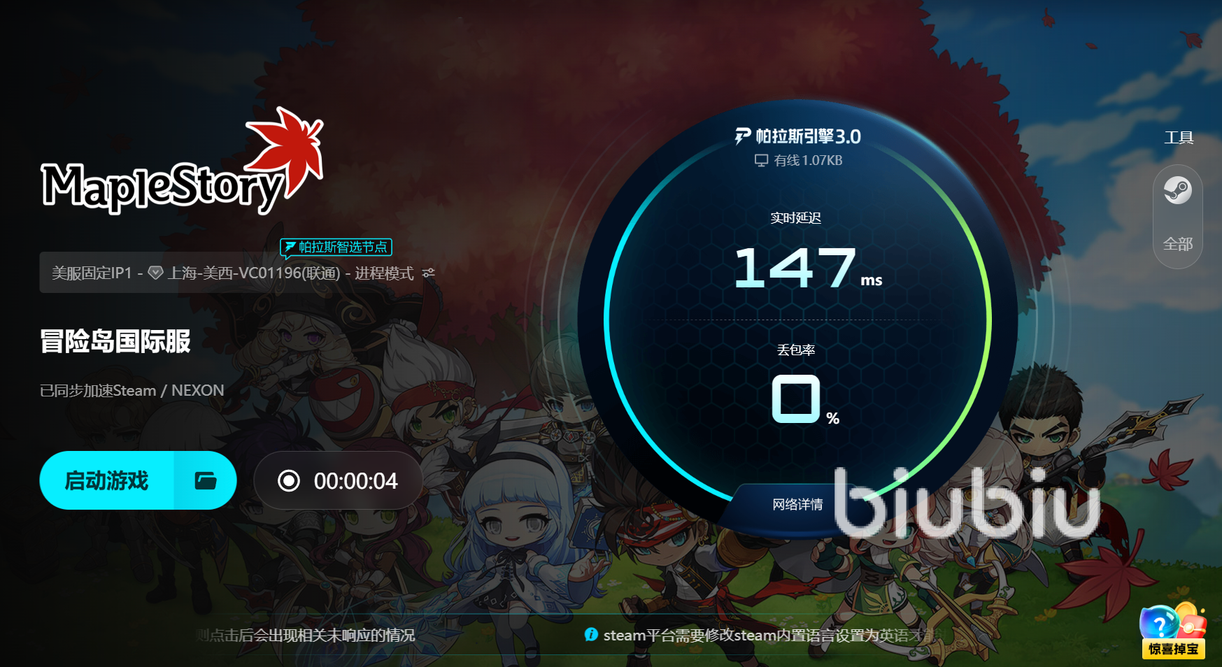 遇到冒險(xiǎn)島國(guó)際服登錄難題?開(kāi)啟biubiu加速器,一鍵優(yōu)化網(wǎng)絡(luò)直達(dá)游戲。無(wú)論是長(zhǎng)時(shí)間刷任務(wù)還是連夜打副本,它都能保證網(wǎng)絡(luò)穩(wěn)定,減少掉線和異常,讓你專(zhuān)心投入游戲世界。畢竟,只有穩(wěn)定流暢的連接,才能真正釋放《冒險(xiǎn)島》的魅力,讓你體驗(yàn)到完整而順滑的冒險(xiǎn)旅程。