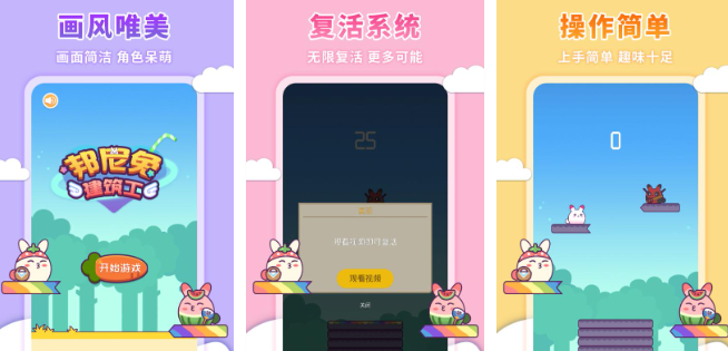 邦尼兔建筑工的主角是一只可愛的邦尼兔,整個(gè)游戲的畫風(fēng)都特別萌,里面的建筑構(gòu)件也都是圓滾滾的,玩法主要是靠時(shí)機(jī)把控來搭建建筑,比如有一個(gè)關(guān)卡是搭兔子的小窩,需要點(diǎn)擊屏幕,讓邦尼兔把木板、干草這些材料放到正確的位置,操作的關(guān)鍵在于時(shí)機(jī),比如當(dāng)木板正好對(duì)準(zhǔn)支架的時(shí)候點(diǎn)擊,木板就能穩(wěn)穩(wěn)地放上去,要是時(shí)機(jī)不對(duì)木板就會(huì)掉下來。