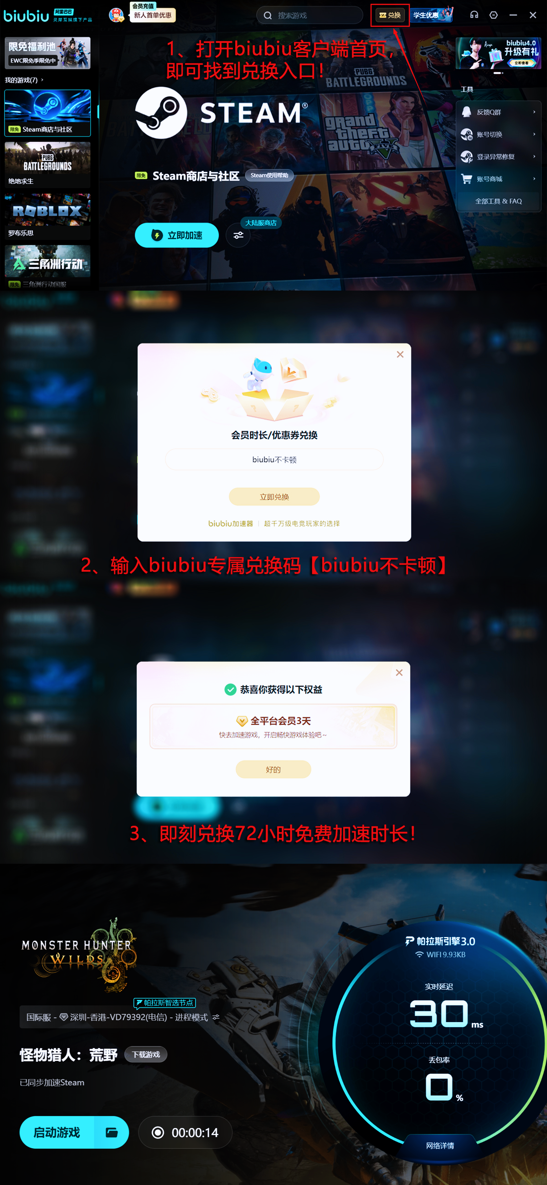 此次更新將推出與人氣在線角色扮演游戲《最終幻想14》的特別聯(lián)動(dòng)合作,這也是本次更新的核心內(nèi)容。為了更順暢地體驗(yàn)聯(lián)動(dòng)玩法,搭配biubiu加速器是不錯(cuò)的選擇,新人在注冊(cè)后便獲24小時(shí)免費(fèi)加速,而且福利也很豐厚,新老用戶使用兌換碼【biubiu不卡頓】還可獲3天免費(fèi)的使用權(quán),助力玩家輕松參與聯(lián)動(dòng)活動(dòng)。