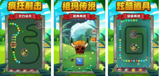 在屏幕上將會看到色彩繽紛的球球,這些球球會從洞口逐漸滾動(dòng)而來,而在中央的青蛙嘴中隨機(jī)彈出不同顏色的球球,您要通過瞄準(zhǔn)并點(diǎn)擊屏幕,就能將相同顏色的球球放在一起從而快速消除。每次在消除之后都可獲得相應(yīng)的分?jǐn)?shù),讓你感受到火力全開,關(guān)卡越來越高,球球滾動(dòng)的速度也會越來越快,要及時(shí)消除,不要讓球球走到終點(diǎn)。