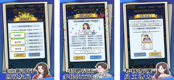 歡迎各位想要創(chuàng)業(yè)的年輕人嘗試這款公司經(jīng)營手游,在本作里你會感受到開設(shè)公司并招募人才的快感,以董事長CEO身份與公司進(jìn)行互動冒險更加有趣,畫面塑造小清新也加入了一系列搞笑劇情,真實(shí)將公司的經(jīng)營環(huán)境、996工作性質(zhì)進(jìn)行呈現(xiàn),高互動性的內(nèi)容呈現(xiàn)提供的經(jīng)營理念更顯精彩,希望玩過這款手游后你也會了解公司的運(yùn)作方式。