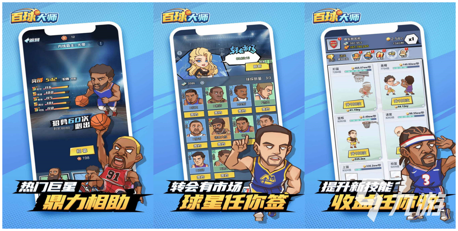 《百球大師》該游戲作為一款十分卡通可愛的籃球經(jīng)營類型游戲,游戲的畫風(fēng)區(qū)別又其他同類型的NBA游戲采用十分卡通幽默的畫風(fēng),玩家們扮演一名籃球俱樂部的老板,去通過球員的能力值去尋找有潛力的球員,去簽約當(dāng)下熱門的巨星,讓他們?yōu)槟闼茫ペA得比賽!