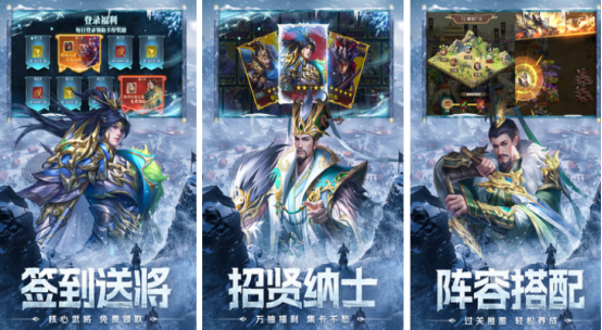 2d的風格渲染出了奇特的三國世界,您作為其中的主角,需要在神奇的三國大陸當中實現(xiàn)攻城略地的重任,其中有眾多優(yōu)秀的武將,等待玩家來隨意招募,比如曹操以及諸葛亮等人。這些人物都有各自的優(yōu)勢,在原有的卡牌玩法上又融入了策略slg的元素,通過完成任務的方式就能獲得很多優(yōu)秀的武將。