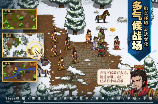 經(jīng)典的像素風格將會讓玩家走入到刺激的三國戰(zhàn)場當中,還以策略戰(zhàn)爭為主要題材。您在其中可以親自感受到三國時期的各種歷史戰(zhàn)役,比如官渡之戰(zhàn)以及赤壁之戰(zhàn)等等,還有眾多優(yōu)秀的歷史名將等待玩家共同協(xié)作。您可以通過招納曹操關羽等人,在戰(zhàn)場當中大殺四方,這些人物都各有千秋,有的善于出謀劃策,有的善于帶兵打仗。
