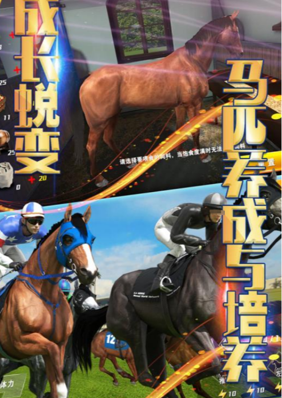 將賽馬比賽進(jìn)行具象化,所有玩家都能自由培育,潛力十足的馬匹,通過喂飼料又或者是研發(fā)優(yōu)良基因等方式,來提高馬匹的奔跑速度以及耐力。有精致的3d引擎技術(shù),無論是馬匹的毛發(fā),又或者是奔跑時(shí)的物理引擎都展現(xiàn)得非常精致,營(yíng)造出身臨其境的競(jìng)速氛圍。支持馬匹競(jìng)猜,所有小伙伴都可預(yù)測(cè)比賽結(jié)果,通過競(jìng)猜的方式享受真實(shí)的賽馬體驗(yàn),也能增強(qiáng)互動(dòng)性。