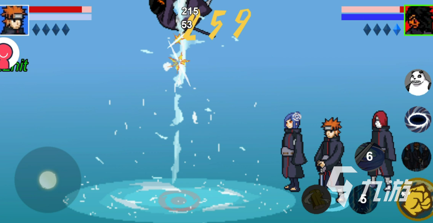 本作亦是有著明顯火影主題的精品單機格斗類游戲,游戲?qū)⒏鞣N格斗元素和火影忍者設(shè)定合二為一,利用戰(zhàn)斗的方式積攢能量才可以釋放強大的忍術(shù)必殺技,可愛精致的像素形象讓忍者角色看上去更加生動,通靈術(shù)、替身術(shù)等豐富技能帶來不錯的戰(zhàn)斗體驗,宏大的火影忍者世界觀設(shè)定也是這款格斗游戲的特色。