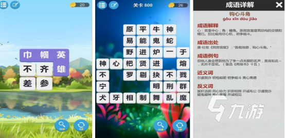 同樣也是根據(jù)成語設(shè)計(jì)的熱門手游加入接龍以及填空等玩法,只要完成關(guān)卡,關(guān)卡當(dāng)中所包含的成語,具體解釋與出處都會(huì)展現(xiàn)到非常精致。同時(shí)也能享受搜詞功能,在學(xué)習(xí)的過程。中遇到某個(gè)成語并不了解具體的解釋以及相應(yīng)的例句,可直接在此游戲當(dāng)中搜索,甚至近義詞反義詞都會(huì)展現(xiàn),玩家游戲的同時(shí)也能學(xué)習(xí)成語知識(shí)。