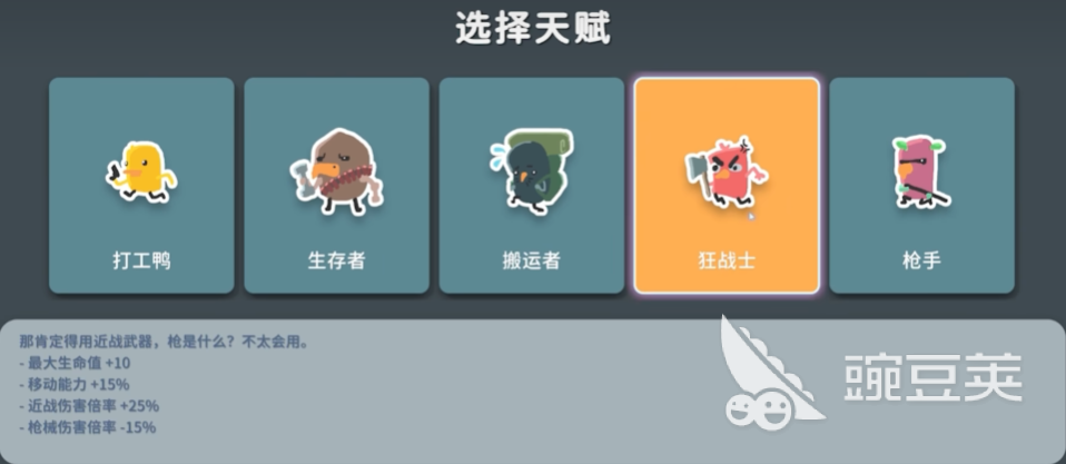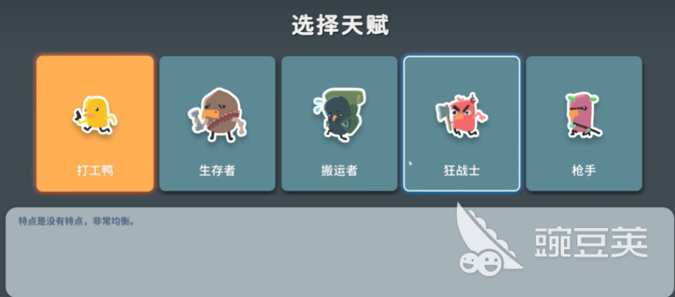 打工鴨:基礎(chǔ)屬性平衡,無(wú)任何增益或削弱效果,適合新手熟悉機(jī)制,是萬(wàn)金油型角色。