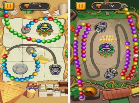 在比較經(jīng)典的游戲畫面以及5個神秘的場景當中,玩家想要獲得寶藏的情況下,必須要在玩的過程當中,進行三個或更多龍珠球的匹配。如果在大理石移出之前,玩家所獲得的分數(shù)比較高的話,也能讓自己不斷的刷新更高的分數(shù)記錄,得到更多的獎勵。除了涵蓋豐富的游戲水平,可以在玩的過程當中,使用道具來完成任務(wù),也有讓人驚嘆的配樂以及特效。