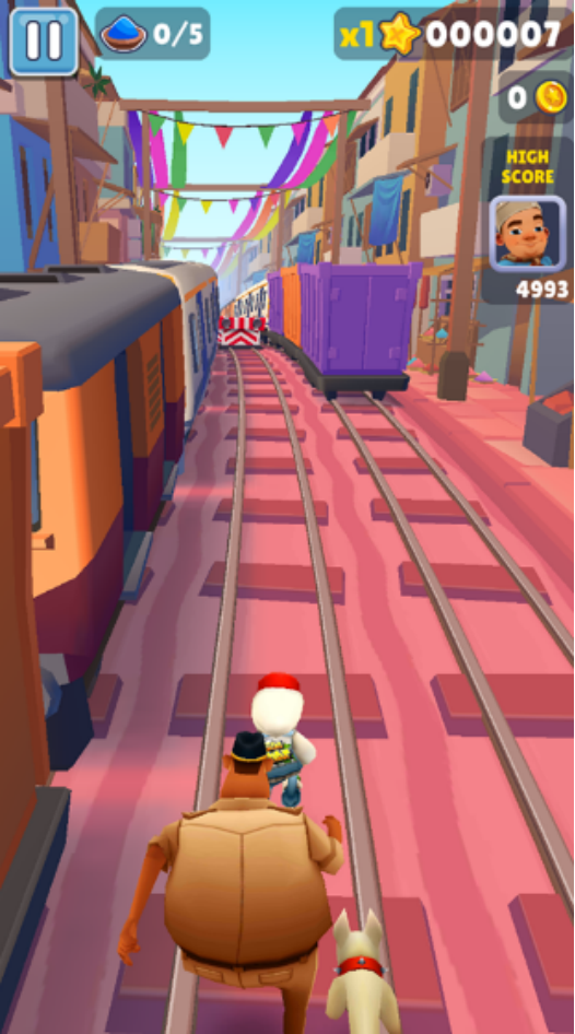 要說起非?;馃岬呐芸嵊螒?,那么這就是當(dāng)之無愧的手游,玩法特別簡單,在開局之后將會(huì)以地鐵軌道為主要背景,您需要操控其中的人物角色,合理走位,還要及時(shí)躲避保安的追擊。還會(huì)呈現(xiàn)出大量的障礙物以及大量金幣和道具都等待玩家來收集,游戲并沒有任何的終點(diǎn),跑得越久,獲得的分?jǐn)?shù)就會(huì)越高。