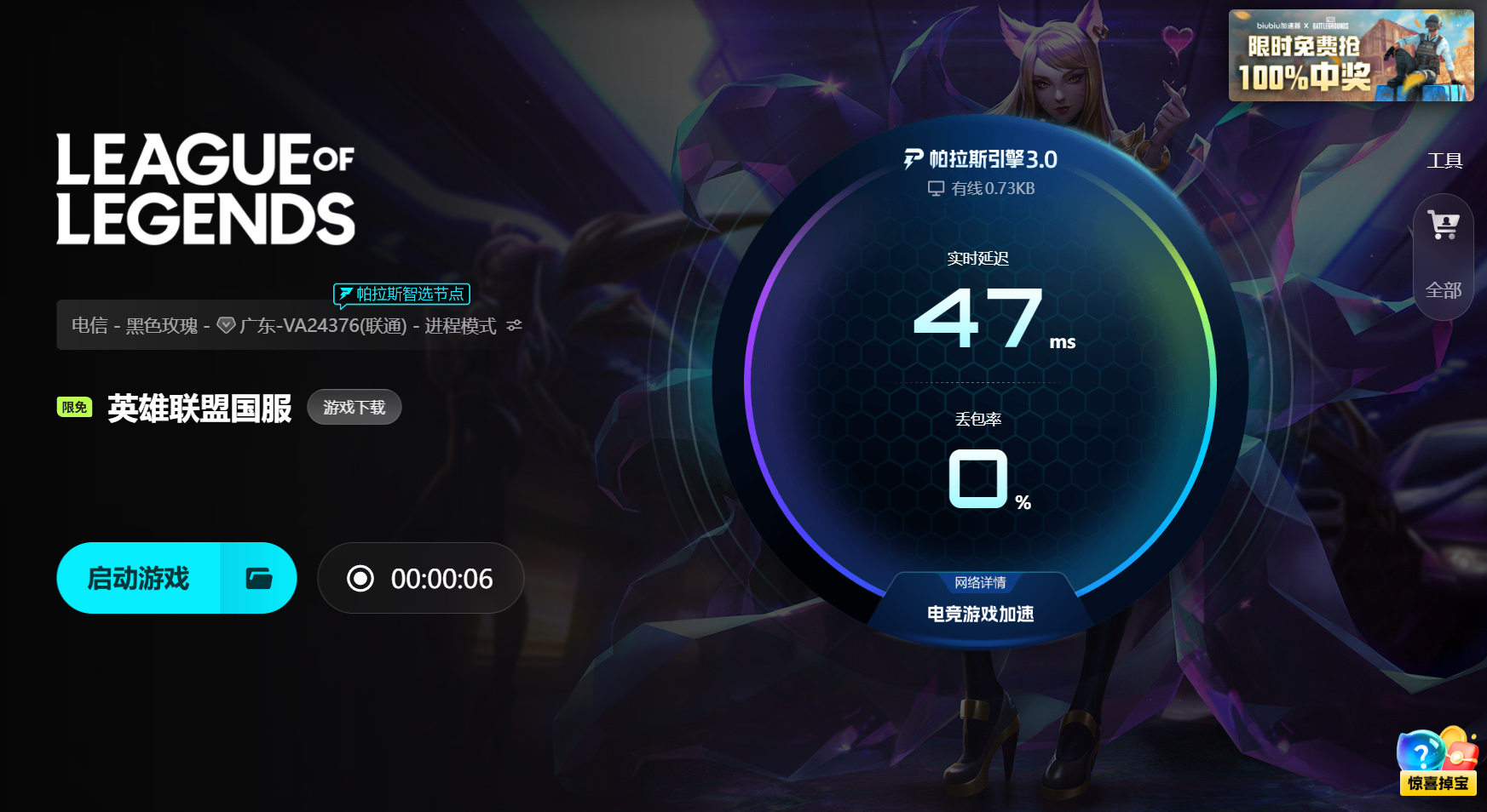 實(shí)際使用效果也非常顯著。玩家們反饋,開啟biubiu后Ping值明顯下降,操作和畫面同步流暢,再也不會(huì)出現(xiàn)技能延遲、團(tuán)戰(zhàn)卡頓的情況。無論是前期對(duì)線拼刀,還是后期打大龍、開團(tuán),都能精準(zhǔn)打出操作節(jié)奏。玩一晚上都不會(huì)掉線,戰(zhàn)績(jī)自然更漂亮。