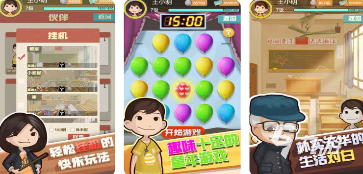 在放置童年游戲中,玩家可重溫童年的各種場景和活動(dòng),在校園場景中角色自動(dòng)上課學(xué)習(xí)知識(shí),通過考試就可以提升等級(jí),解鎖新的校園劇情和活動(dòng),家庭生活方面角色自動(dòng)完成家務(wù),與家人互動(dòng)增進(jìn)親情關(guān)系,戶外玩耍場景下,角色自動(dòng)參與童年游戲,完成特定游戲任務(wù)可解鎖新的戶外區(qū)域或玩具。